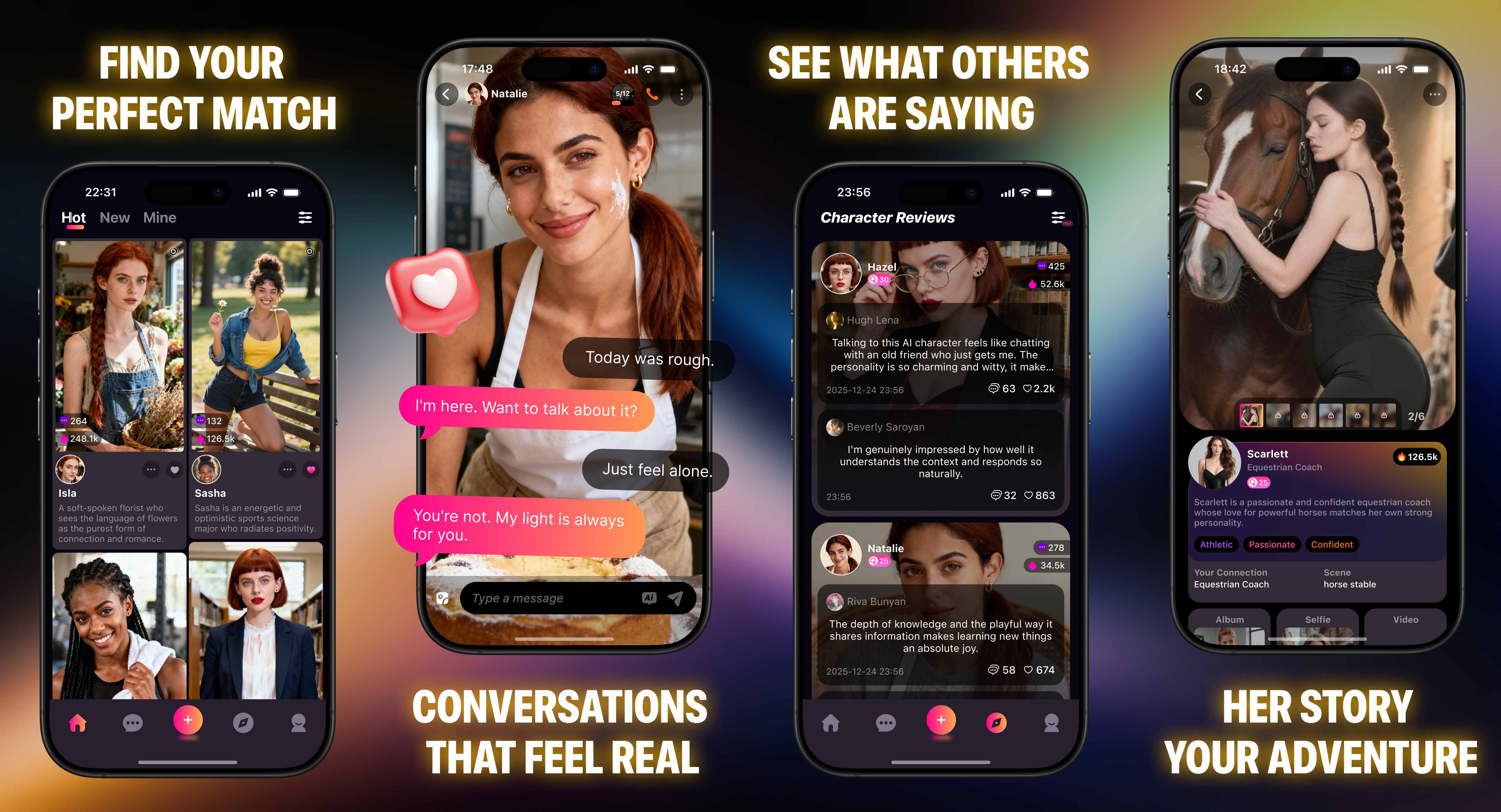 • Community Rating System - Browse and share feedback on the hottest AI characters created by our community